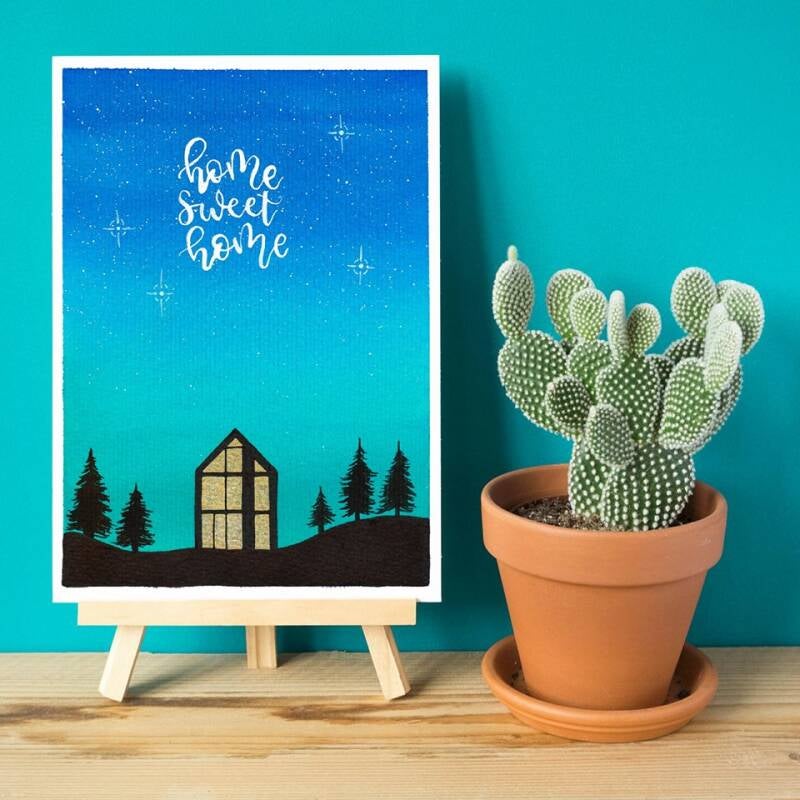 Een getalenteerde vriendin van onze opdrachtgevers heeft dit schilderij gemaakt als Housewarming cadeau. Het is het silhouet van deze woning (Barnhouse) die wij voor hun hebben mogen realiseren. Kijk vooral eens op de facebookpagina van Inkerbell Design voor meer kunstwerken.