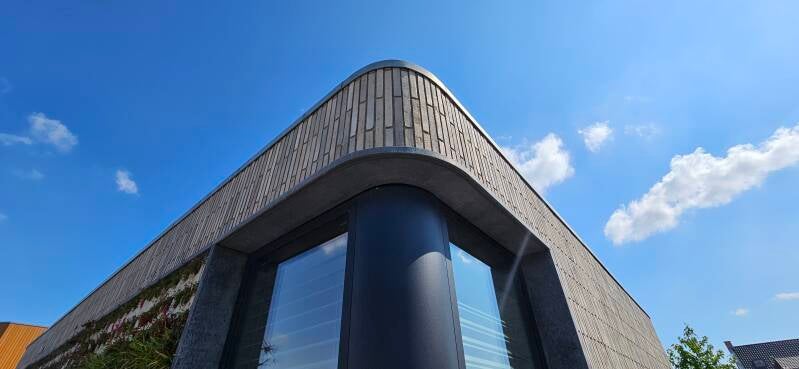 Naast de vorm en de hoeken van het metselwerk hebben beide villa's ook flink wat eyecatchers in het metselwerk.